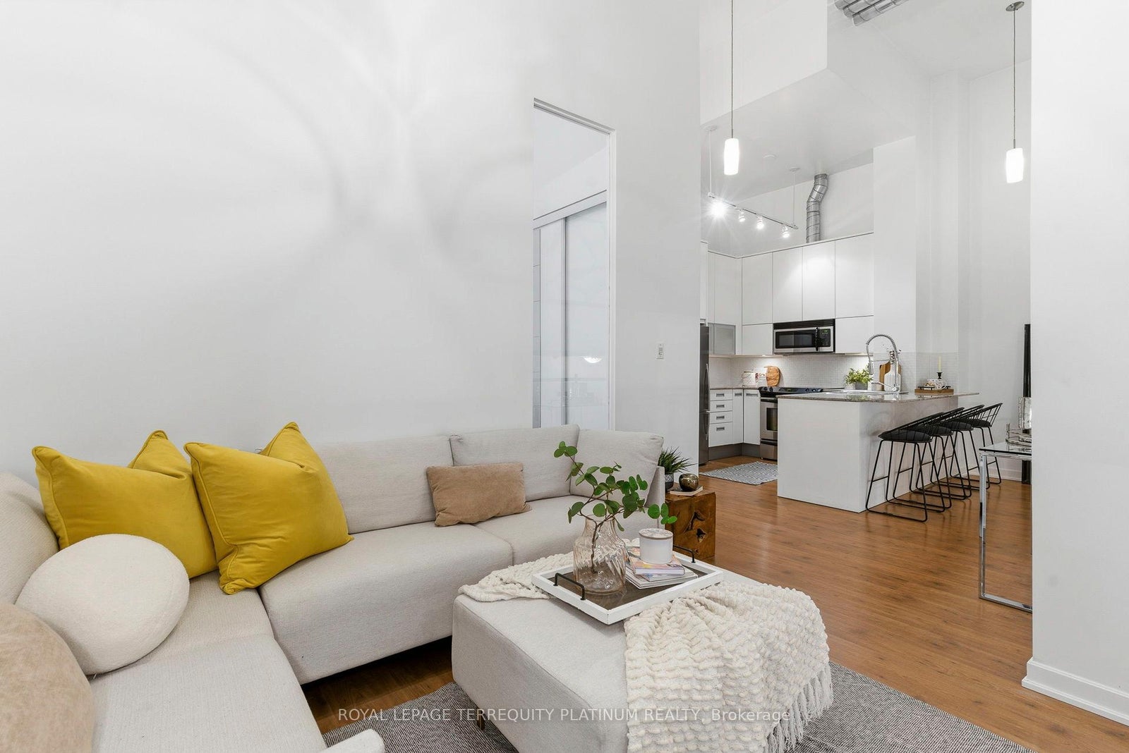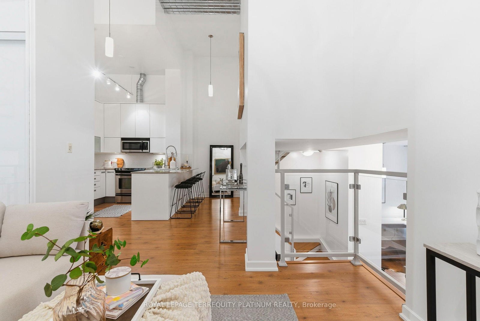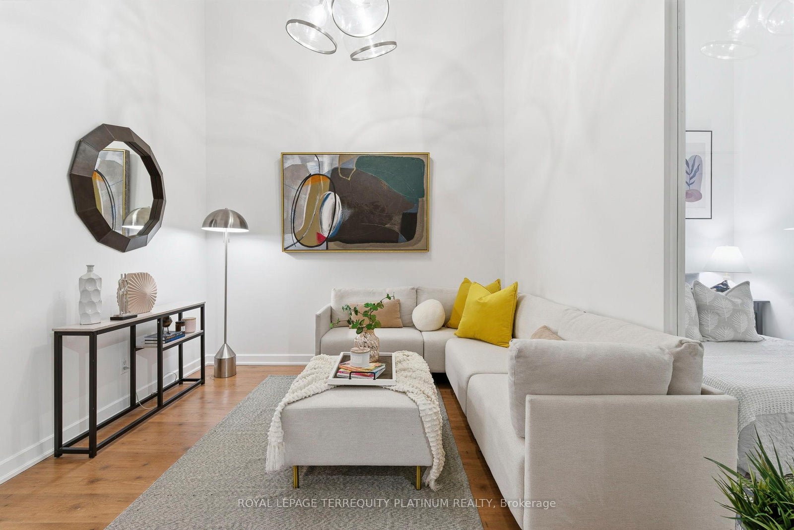 Welcome to a truly special three-storey condo loft that seamlessly blends the convenience of direct street access with a creative and airy layout designed for elevated living. From the moment you enter, soaring 14-foot ceilings in the main living space create a striking sense of openness and architectural interest. Enjoy iconic CN Tower views from the ground-level area and the upper bedroom, bringing a distinctive Toronto skyline to everyday living. Thoughtfully designed as a two-bedroom plus den suite, the versatile den is ideal as a home office or can easily be converted into a third bedroom, complete with its own closet space. Ideally located close to the condo amenities on the first floor, and just steps from the elevator, the unit offers quick access to underground parking and storage, where the large walk-in storage room (9'10" x 8'6") is conveniently beside the parking spot. Residents enjoy well-maintained common areas, including bike storage, party room, media room, gym, and a rooftop garden with BBQs offering stunning views of majestic Casa Loma. Moments from Dupont Subway and surrounded by boutique shops, cafés, and fine dining, this professionally painted, cleaned, move-in-ready home delivers a refined urban lifestyle best experienced in person. 3D Tour & Video Available. Book your private showing today.