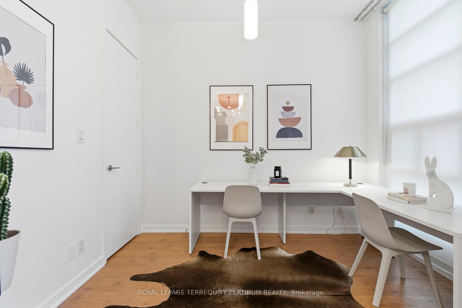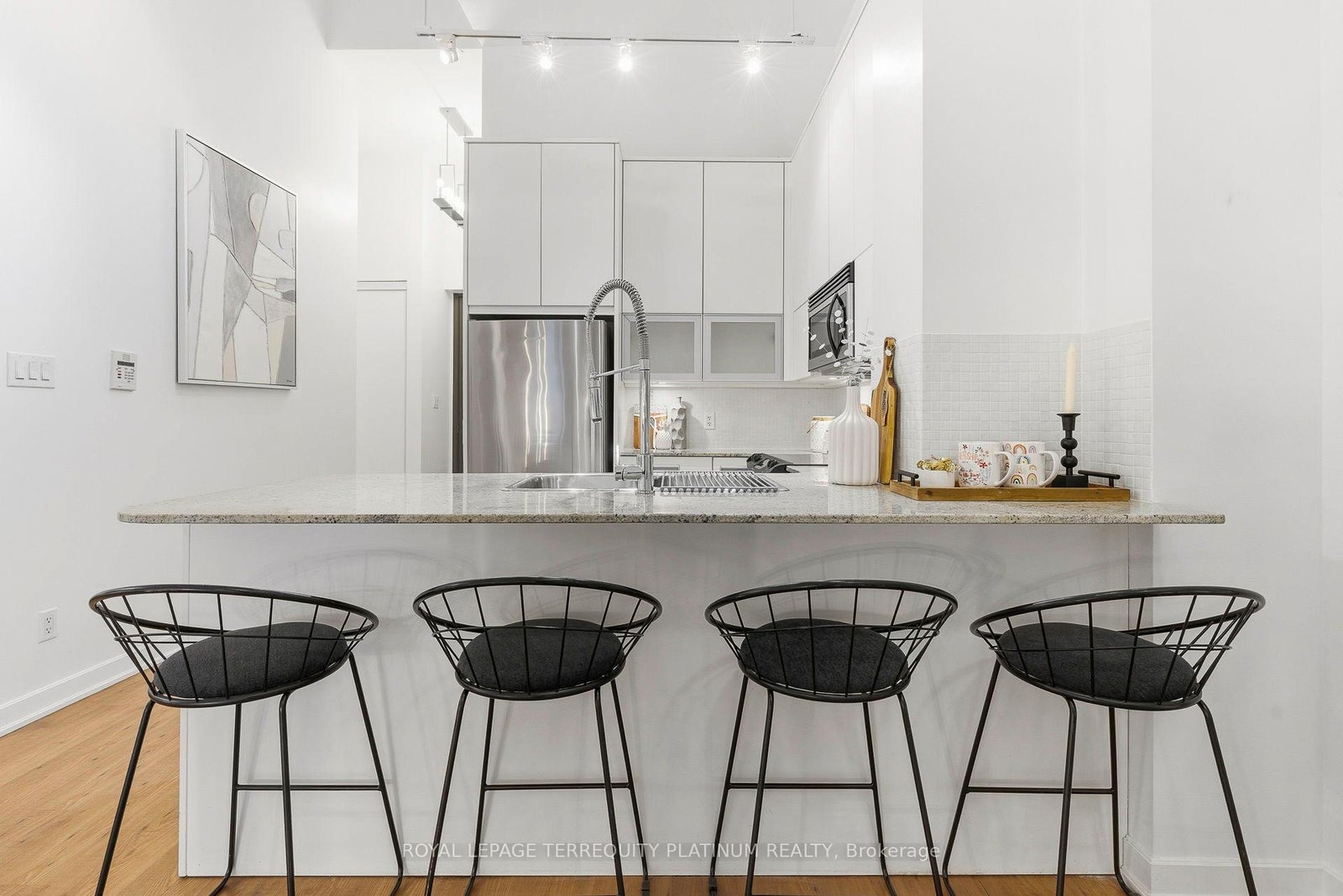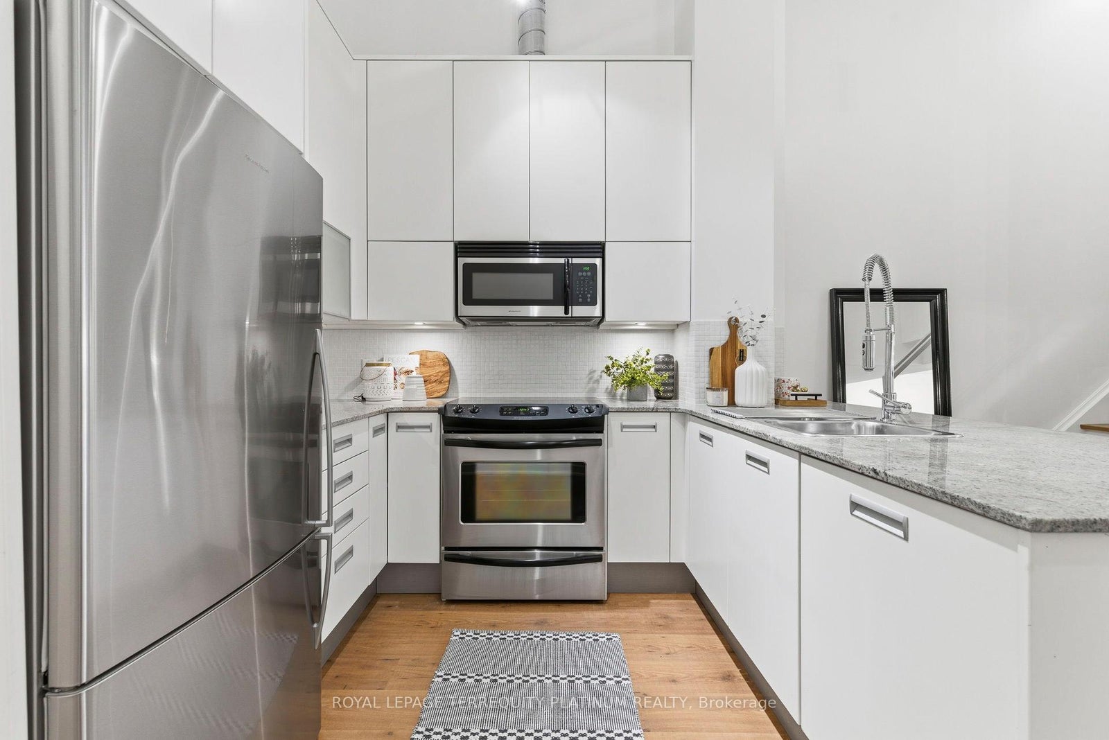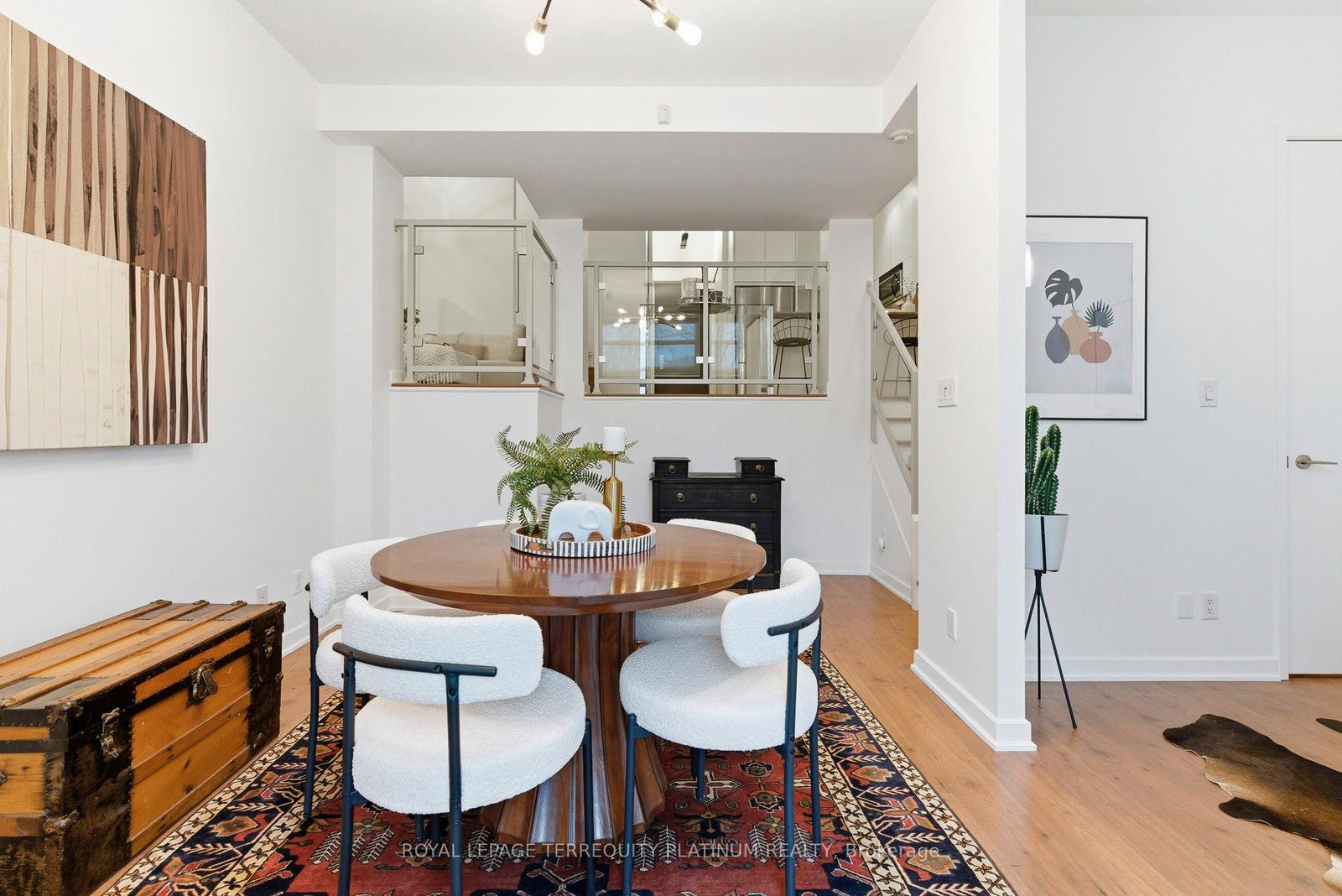 Welcome to a truly special three-storey condo loft that seamlessly blends the convenience of direct street access with a creative and airy layout designed for elevated living. From the moment you enter, soaring 14-foot ceilings in the main living space create a striking sense of openness and architectural interest. Enjoy iconic CN Tower views from the ground-level area and the upper bedroom, bringing a distinctive Toronto skyline to everyday living. Thoughtfully designed as a two-bedroom plus den suite, the versatile den is ideal as a home office or can easily be converted into a third bedroom, complete with its own closet space. Ideally located close to the condo amenities on the first floor, and just steps from the elevator, the unit offers quick access to underground parking and storage, where the large walk-in storage room (9'10" x 8'6") is conveniently beside the parking spot. Residents enjoy well-maintained common areas, including bike storage, party room, media room, gym, and a rooftop garden with BBQs offering stunning views of majestic Casa Loma. Moments from Dupont Subway and surrounded by boutique shops, cafés, and fine dining, this professionally painted, cleaned, move-in-ready home delivers a refined urban lifestyle best experienced in person. 3D Tour & Video Available. Book your private showing today.