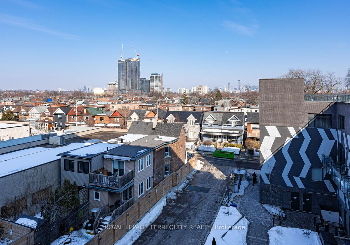 Welcome to this bright and inviting 2-bedroom, east-facing condo offering the perfect blend of character and convenience. Bathed in morning light, this thoughtfully designed suite features rich hardwood floors throughout and a stunning feature brick wall that adds warmth and urban charm. The spacious kitchen showcases beautifully panelled cabinetry, providing both style and ample storage. Enjoy the ease of ensuite laundry, along with the added value of a private balcony - perfect for your morning coffee - plus dedicated parking and a locker for extra storage. Ideally located within walking distance to the subway, the vibrant shops and cafés of Bloordale, MacGregor Park, and the charming streets of Roncesvalles. Situated in an excellent school district, this home offers an exceptional lifestyle in one of the city's most desirable neighbourhoods. A perfect opportunity for professionals, couples, or small families seeking comfort, character, and a great sense of community !