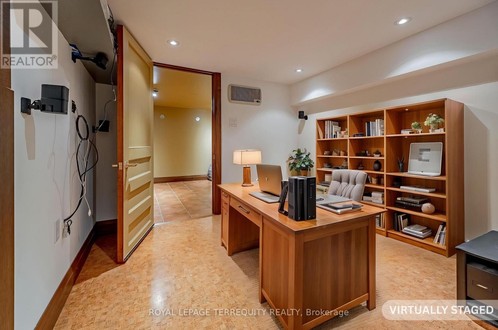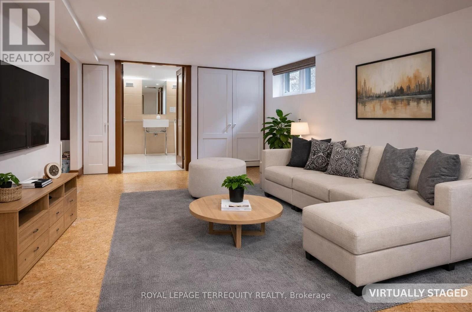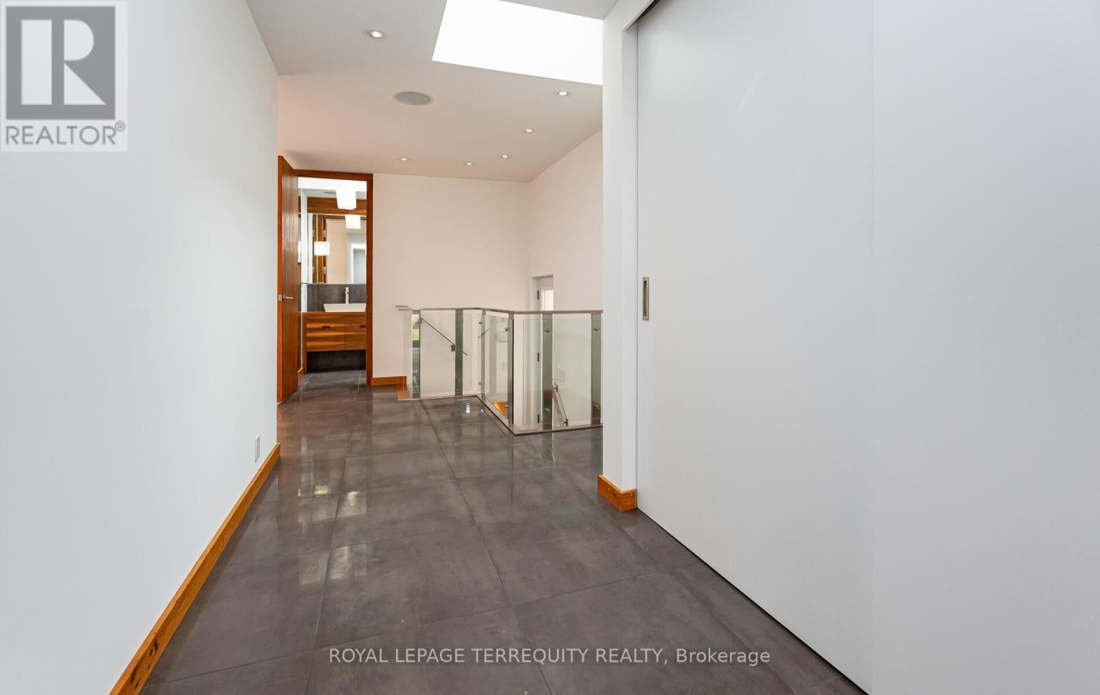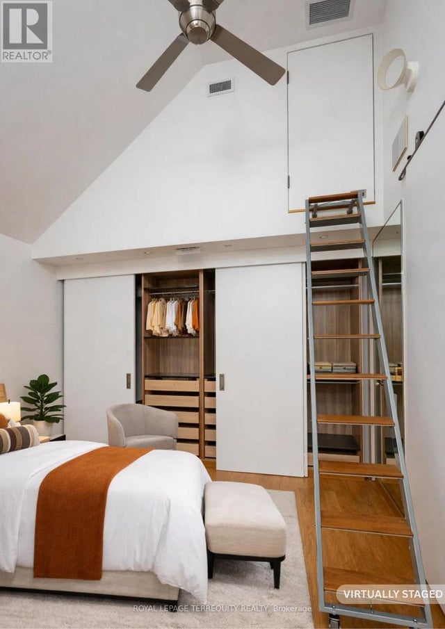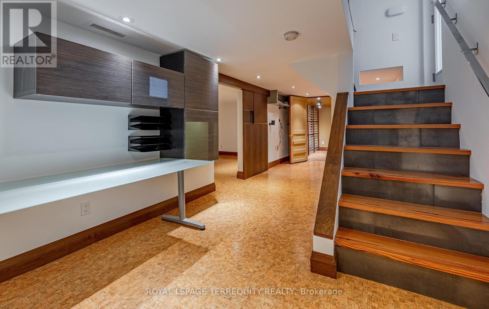 Architect-designed and thoughtfully modernized, this exceptional home seamlessly blends function, space, and natural light with the highest quality finishes throughout. A welcoming front porch leads into a striking interior featuring polished concrete floors with in-floor heating across the main level, complemented by warm, comfortable cork flooring on the lower level. German-engineered wood windows and doors, LED pot lighting, and a built-in sound system enhance the home's refined, contemporary feel. The custom kitchen is a true centerpiece, anchored by a massive island-perfect for both everyday living and entertaining. Two beautifully renovated bathrooms offer style and comfort, while a temperature- and humidity-controlled wine cellar adds a touch of luxury. Outdoors, professionally landscaped gardens showcase mature and native trees and plantings, creating a private, serene retreat. Enchanting rain chains add a unique architectural element to the property. A private drive with parking for two cars adds rare convenience. A standout feature is the incredible garage conversion, now a fabulous studio complete with independent heating and cooling-ideal for a home office, creative space, or guest retreat. The main floor primary bedroom offers wall-to-wall closets with custom organizers, a sleek 3- piece bath, and a thoughtfully integrated finished loft providing exceptional additional storage. The second bedroom is privately situated on the lower level and features its own full 3-piece ensuite bath. Perfectly located just minutes to Bloor Street's shops and cafés, the subway, the lake, and top local amenities including Swansea P.S., the Swansea Recreation Centre, and Rennie Park. Situated within an excellent school district and a truly wonderful community. Please Note: The property is virtually staged. (42590879)