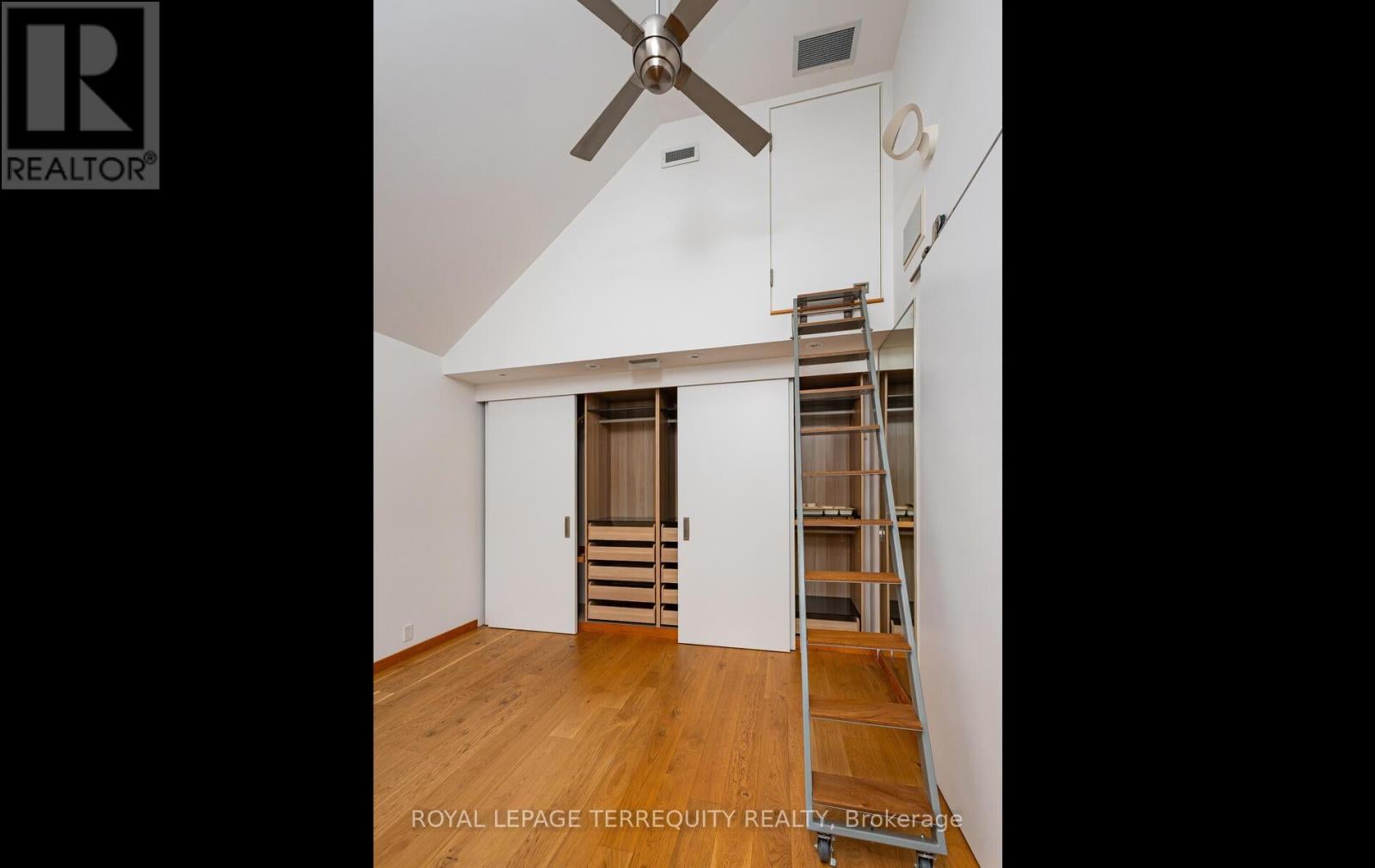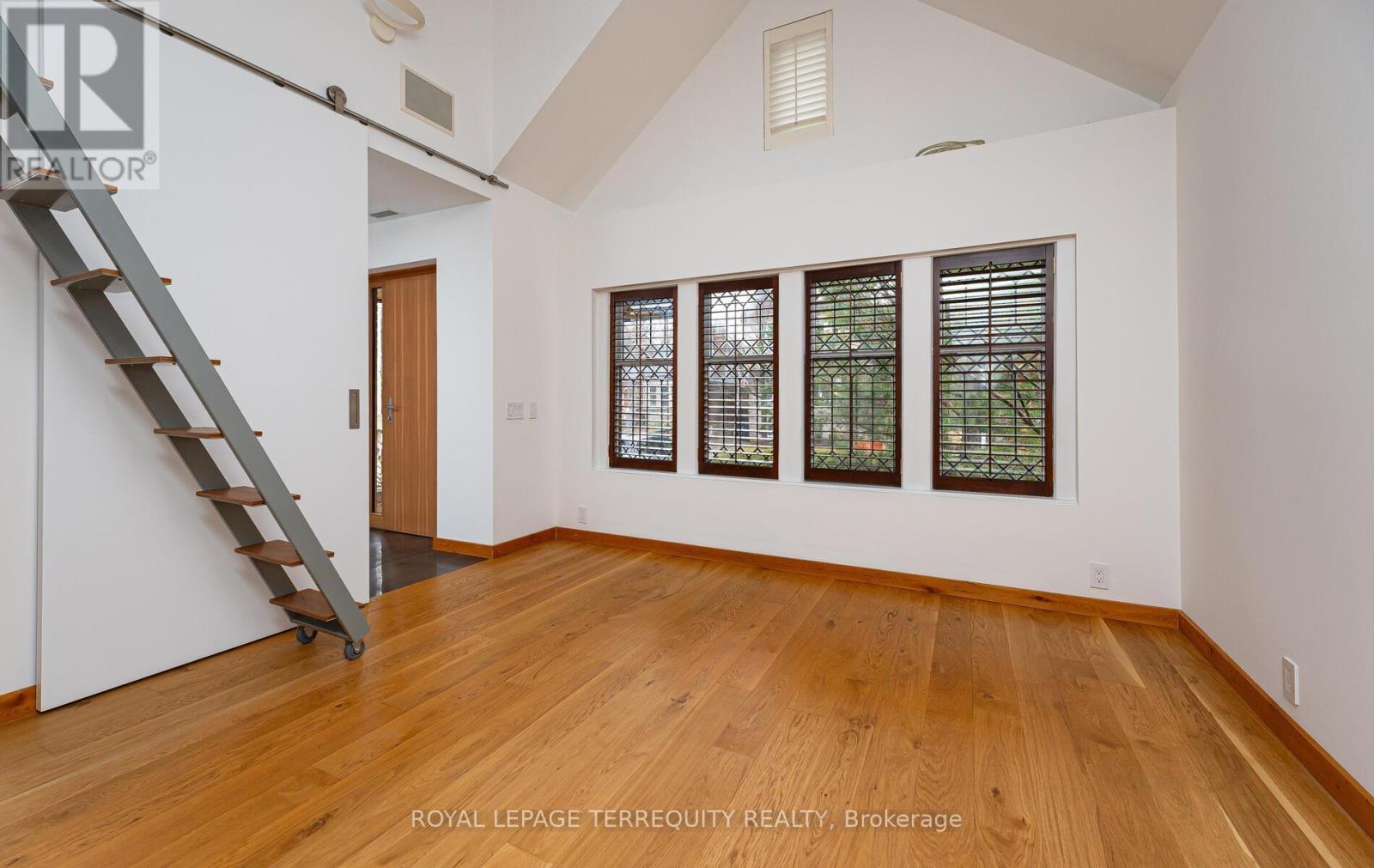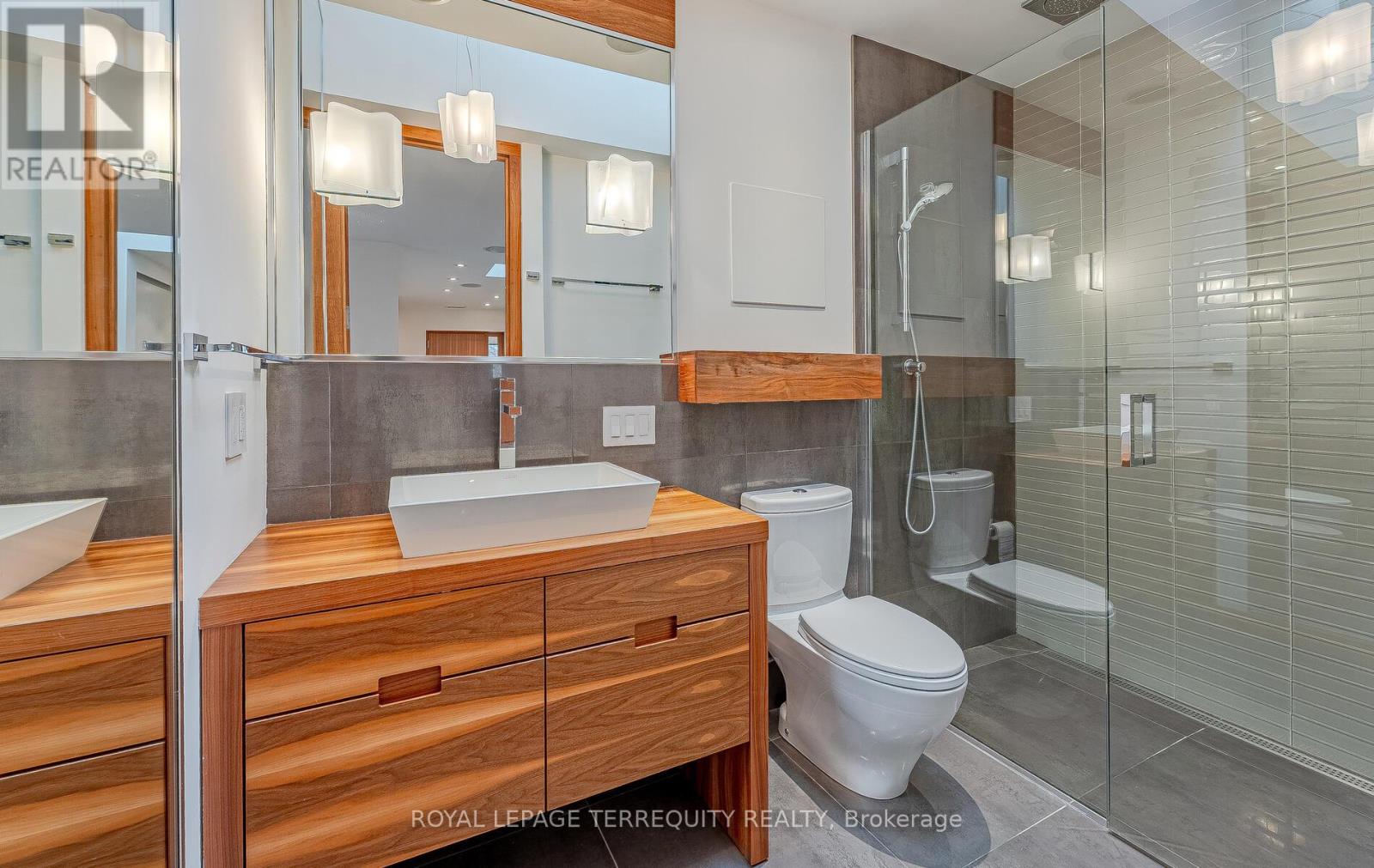 Architect-designed and thoughtfully modernized, this exceptional home seamlessly blends function, space, and natural light with the highest quality finishes throughout. A welcoming front porch leads into a striking interior featuring polished concrete floors with in-floor heating across the main level, complemented by warm, comfortable cork flooring on the lower level. German-engineered wood windows and doors, LED pot lighting, and a built-in sound system enhance the home's refined, contemporary feel. The custom kitchen is a true centerpiece, anchored by a massive island-perfect for both everyday living and entertaining. Two beautifully renovated bathrooms offer style and comfort, while a temperature- and humidity-controlled wine cellar adds a touch of luxury. Outdoors, professionally landscaped gardens showcase mature and native trees and plantings, creating a private, serene retreat. Enchanting rain chains add a unique architectural element to the property. A private drive with parking for two cars adds rare convenience. A standout feature is the incredible garage conversion, now a fabulous studio complete with independent heating and cooling-ideal for a home office, creative space, or guest retreat. The main floor primary bedroom offers wall-to-wall closets with custom organizers, a sleek 3- piece bath, and a thoughtfully integrated finished loft providing exceptional additional storage. The second bedroom is privately situated on the lower level and features its own full 3-piece ensuite bath. Perfectly located just minutes to Bloor Street's shops and cafés, the subway, the lake, and top local amenities including Swansea P.S., the Swansea Recreation Centre, and Rennie Park. Situated within an excellent school district and a truly wonderful community. Please Note: The property is virtually staged. (42590879)